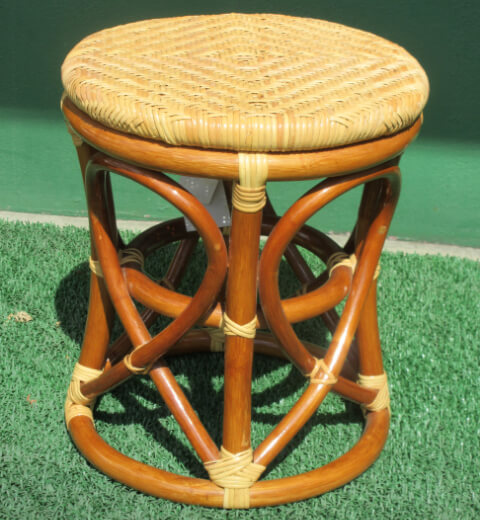 温泉や施設の脱衣場では定番品。ご家庭使用もあると可愛く便利です。丸くてエレガントなラタン・スツールは木製ドレッサーと相性が良いので2代目スツールに勧めです。